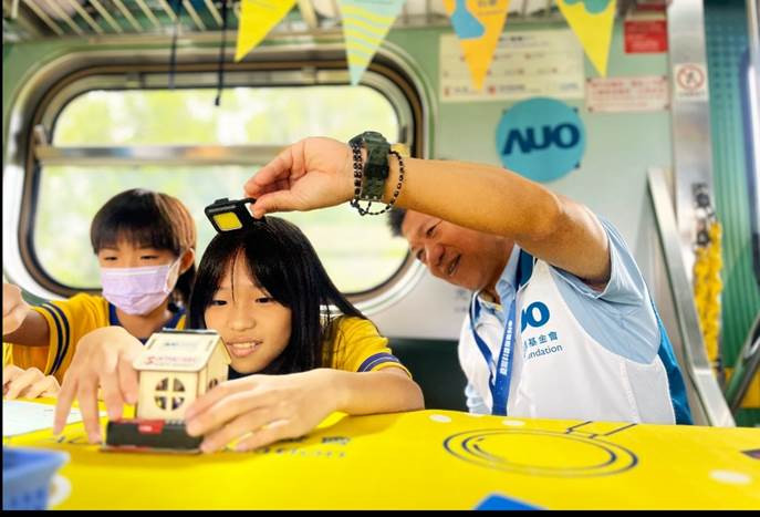 友達20年來持續關注偏鄉教育,推動科普觸及偏鄉師生,環島「科普列車」上透過永續節能小屋瞭解太陽能的儲能技術。
